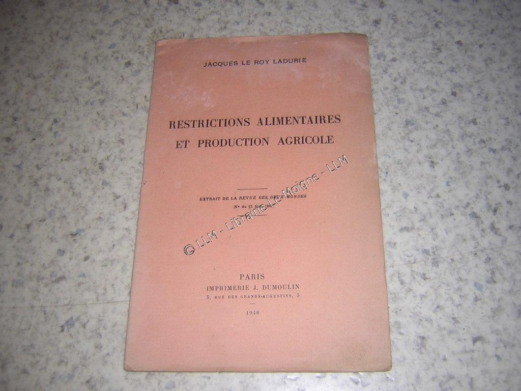 Offres 1940.restrictions alimentaires.Le Roy Ladurie.envoi autographe.agriculture Vichy, 1940.restrictions alimentaires.Le Roy Ladurie.envoi autographe.agriculture Vichy soldes